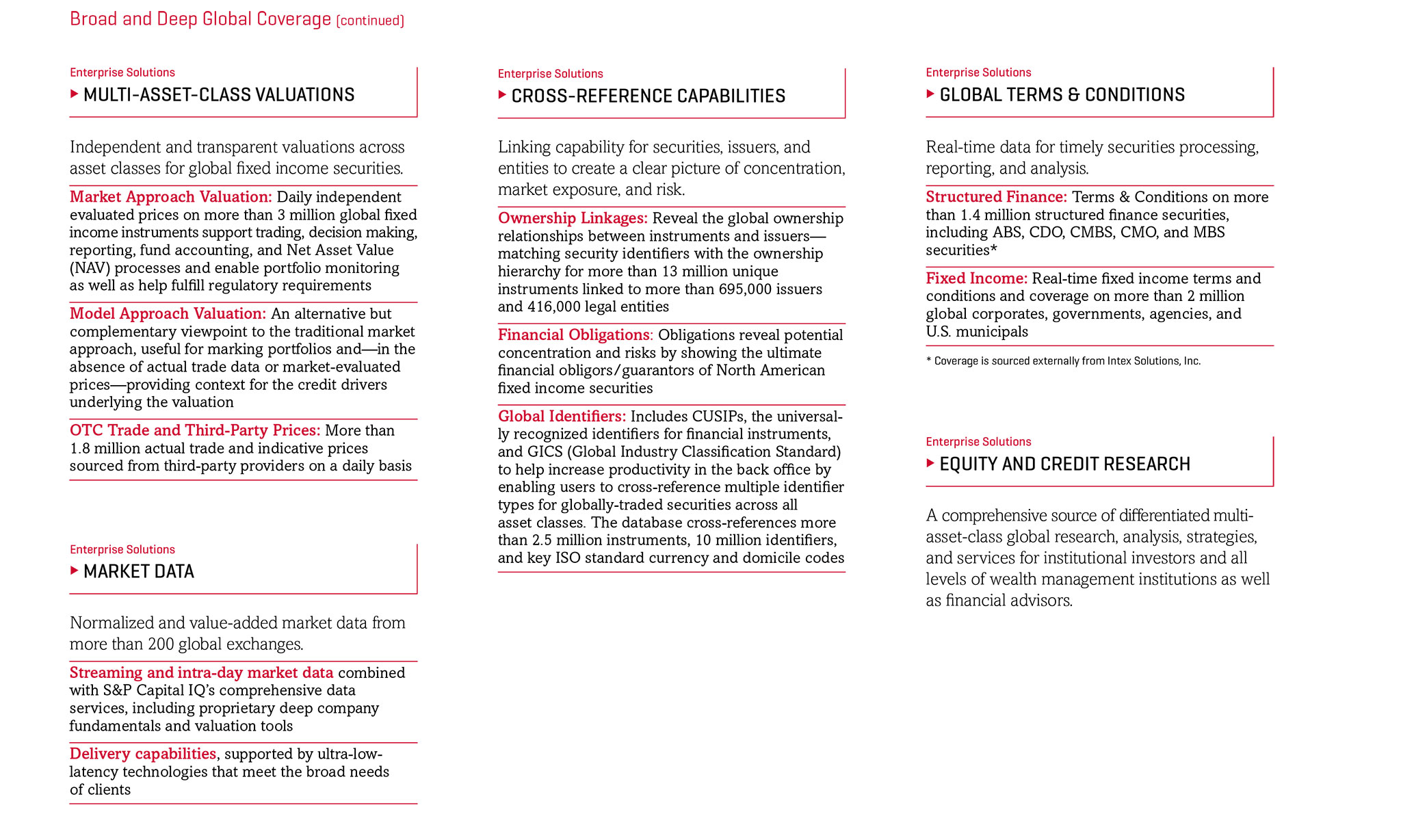 Multi-Asset-Class Valuations, Market Data , Cross-Reference Capabilities, Global Terms & Conditions, Equity and Credit Research