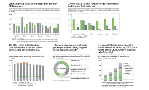 Latin America, Asia Pacific, EU, and U.S. Infrastructure Investment (charts)